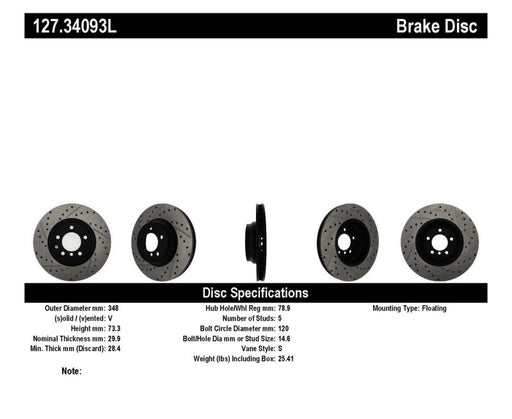 StopTech 08+ Subaru STI (Will Not Fit 05-07) Slotted & Drilled Sport Brake Rotor