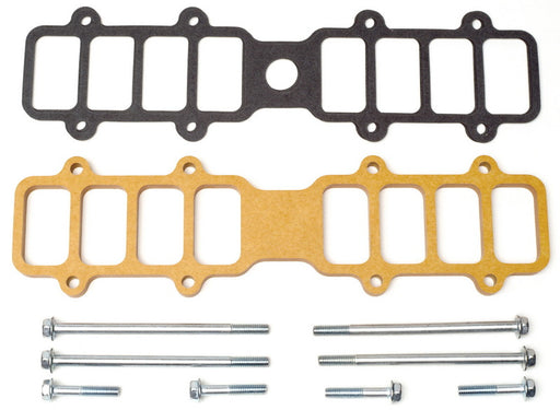 EdelbrockEdelbrock part #8727 spacer kit includes a 7/16" thick spacer and two .045" thick gaskets for a total thickness of 1/2". The kit also has new base ...
