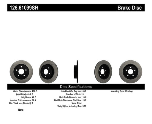 StopTech 12-13 Jeep SRT8 Front Right Slotted Sport Brake Rotor
