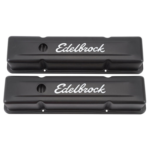 EdelbrockThe Edelbrock #4649 Signature Series Valve Covers are designed for Chevrolet 262-400 '59-86 applications. Engineered for function and styled for gr...