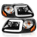 ANZO 1997-2003 Ford F-150 Projector Headlights w/ Light Bar Black Housing