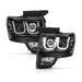 ANZO 2009-2014 Ford F-150 Projector Headlights w/ U-Bar Switchback Black w/ Amber