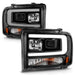 ANZO 99-04 Ford F250/F350/F450/Excursion (excl 99) Projector Headlights - w/ Light Bar Black Housing