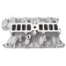 Edelbrock part #3881 Performer 5.8L EFI intake manifold is designed for 1988-96 Ford 5.8L, EFI, truck engines, the modular design of this manifold incorporates the latest air flow technology for maximum torque gains in the mid-range. This manifold made 34 ft-lbs. more torque than stock on our test engine. Other features include: broad power range from idle to 5500 rpm; removable plenum cover that allows access to runners; base manifold is CNC port matched to upper manifold for maximum power; and accepts all stock hardware. The upper is powder-coated light titanium gray, base is satin. Use with stock or stock replacement twin throttle body. Will not fit vans.
