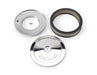 Edelbrock triple chrome-plated round air cleaner #1208 works with all popular 5-1/8" diameter carburetors (Performer Series, Thunder Series AVS, Holley, Thermo-Quad, Quadra jet and Carter AFB). The 10" and 14" models have knock-outs in the air cleaner base for use with Edelbrock crank case ventilation adapter #1205 (sold separately). #1208, #1209 and #1221 fit all Edelbrock carburetors. Heights of air cleaners are in parentheses, measured from the gasket flange to the top of the supplied retaining nut. Dimensions are accurate within 1/8".