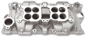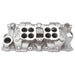 Edelbrock part #5425 C-26 Dual-Quad intake manifold is for 1955-86 262-400 c.i.d. S/B Chevys. This dual-quad has a low profile for hood clearance on most vehicles. Air-conditioning bosses and front oil filler tube boss included. Stock alternator brackets do not fit Carb center to carb center: 6-7/16". Accepts oil fill tube and breather #4803. Use with Performer-Plus cam #2103 for low-end torque or Torker-Plus cam/kit #5002 for top-end power.