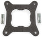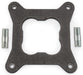 The Edelbrock Square-bore Heat Insulator Gasket #9266 is designed to prevent percolation on Edelbrock Performer Series carburetors exposed to extreme under hood temperatures. This gasket features an open center which will allow open plenum Torker and Victor style manifolds to seal properly to the carburetor. Prior to installation, check air cleaner-to-hood clearance to ensure that additional height of heat insulator gasket will not cause interference. Remove air cleaner and all attachments to the carburetor such as fuel line, throttle linkage, and vacuum lines. Be sure to note the position or tag each piece to facilitate re-installation. Remove the carburetor and set it aside, then remove the old base gasket and any additional plates, such as Edelbrock square-bore adapter #2732. Remove the short carb studs and install the longer studs. Install the #9265 heat insulator gasket directly against the manifold, then replace the carb and all other connections. Note that gasket #9265 is rigid enough to replace square-bore adapter plate #2732, if required.
