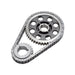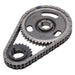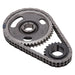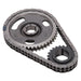 Edelbrock part #7818 Performer-Link timing chain is for use with Edelbrock or stock cams. They have a solid-bushing chain for a true bearing surface that rolls with the sprockets, eliminating chain stretch. Cam sprockets are made from 35,000 psi tensile strength cast iron. Crank sprockets are made from billet SAE-1144 steel and induction heat treated. Four Performer-Link sets are stock replacement parts and 50-state legal (see listings in bold type). All other sets have three keyway setting points to ensure accurate timing selection for early or late-model vehicles. Performer-Link timing sets are not for use above 6500 rpm- ? Performer roller chain sets are engineered to operate up to 6500 rpm.- ? Never hammer directly on chain or sprockets. You can crack the hardened links and pins and cause early failures. - ? Use a sleeve for installations that require hammering, a brass drift punch may be used if you carefully alternate blows on either side of the sprocket to avoid cocking. - ? Never stretch the chain with a screwdriver. - ? Check for clearance between the timing chain and block and between the chain and front cover before reassembly. - ? Be sure that both cam and crank sprockets are exactly in line with each other. Misalignment can cause chain to break