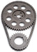 Edelbrock part #7809 Performer-Link timing chain is for use with Edelbrock or stock cams. They have a solid-bushing chain for a true bearing surface that rolls with the sprockets, eliminating chain stretch. Cam sprockets are made from 35,000 psi tensile strength cast iron. Crank sprockets are made from billet SAE-1144 steel and induction heat treated. Four Performer-Link sets are stock replacement parts and 50-state legal (see listings in bold type). All other sets have three keyway setting points to ensure accurate timing selection for early or late-model vehicles. Performer-Link timing sets are not for use above 6500 rpm- ? Performer roller chain sets are engineered to operate up to 6500 rpm.- ? Never hammer directly on chain or sprockets. You can crack the hardened links and pins and cause early failures. - ? Use a sleeve for installations that require hammering, a brass drift punch may be used if you carefully alternate blows on either side of the sprocket to avoid cocking. - ? Never stretch the chain with a screwdriver. - ? Check for clearance between the timing chain and block and between the chain and front cover before reassembly. - ? Be sure that both cam and crank sprockets are exactly in line with each other. Misalignment can cause chain to break