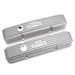Edelbrock part #41439 Classic Series Valve Covers are designed for Chevy 262-400 V8 1959-86 (with breather holes) applications and have a Satin finish. Edelbrock first made these aluminum valve covers in the late '50s and they're still a classic. Made of heavy-gauge sand-cast aluminum, Overall height is measured from base to top at the highest point. Edelbrock classic valve covers can be machined to accept breathers if desired.