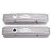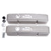 Edelbrock part #41449 Classic Series Valve Covers are designed for Chevy 262-400 V8 1959-86 (with oil fill hole) applications and have a Satin finish. Edelbrock first made these aluminum valve covers in the late '50s and they're still a classic. Made of heavy-gauge sand-cast aluminum, Overall height is measured from base to top at the highest point. Edelbrock classic valve covers can be machined to accept breathers if desired.
