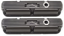 Edelbrock part #41763 Classic Series Valve Covers are designed for Chrysler Small-Block LA 318-340-360 applications and have a Black finish. Edelbrock first made these aluminum valve covers in the late '50s and they're still a classic. Made of heavy-gauge sand-cast aluminum, Overall height is measured from base to top at the highest point. Edelbrock classic valve covers can be machined to accept breathers if desired.