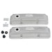 Edelbrock part #41629 Classic Series Valve Covers are designed for Ford FE V8 1958-1976 applications. Edelbrock first made these aluminum valve covers in the late '50s and they're still a classic. Made of heavy-gauge sand-cast aluminum, Overall height is measured from base to top at the highest point. Edelbrock classic valve covers can be machined to accept breathers if desired. May not clear some power brake boosters on Ford FE applications.