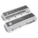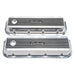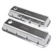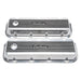 The Edelbrock #4275 Elite II Valve Covers are designed for Chevy Big-Block V8 1965 & Later applications. This new line of Elite II valve covers feature a design that is influenced by the original Elite Series originally released in 1985, but with a new modern take on this classic look. They're made from heavy-gauge, die-cast aluminum and are finished off with a show quality high luster polished finish. The raised fins are accented by a contrast gloss black finish between the fins for the definitive Elite Series look. Our tall profile valve covers are 2" taller than stock, and clear most roller rockers and valvetrain components. Our low profile valve covers clear all air-conditioning, alternator brackets and aluminum rockers. Overall height is measured from gasket flange to top at the highest point.