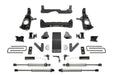Fabtech's new 4" crossmember systems utilize their proven heavy duty construction and design features for a robust suspension upgrade. The 4" system features high arched lower control arm crossmembers constructed of 1/4" thick steel for maximum strength. The Fabtech ductile iron steering knuckles retain the near stock track width keeping tires under the fender for a clean appearance. Rear lift is accomplished with a block and u bolt configuration.