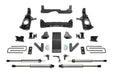 Fabtech's new 4" crossmember systems utilize their proven heavy duty construction and design features for a robust suspension upgrade. The 4" system features high arched lower control arm crossmembers constructed of 1/4" thick steel for maximum strength. The Fabtech ductile iron steering knuckles retain the near stock track width keeping tires under the fender for a clean appearance. Rear lift is accomplished with a block and u bolt configuration.