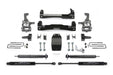 Fabtech's new 4'' F150 system utilizes their proven heavy duty construction and design features found in our 6'' systems but with less lift and at a much lower price. This 4'' Systems allows use of 35'' tall tires and features high arched lower control arm crossmembers constructed of 1/4 “ thick steel for maximum strength. The Fabtech ductile iron steering knuckles retain the stock track width keeping the tires under the fender for a clean appearance. Rear lift is accomplished with a block and u bolt configuration. The Basic System includes heavy duty front Coilover shocks for increased dampening capacity while retaining the factory coil springs. Rear shocks include Fabtech's Performance or Stealth shocks.