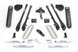 For the ultimate in suspension performance for the Super Duty we offer a bolt on 4 Link System that provides unsurpassed articulation and wheel travel. These 2'' diameter heavy wall links feature race style 1'' Uniballs for superior strength. Thick 1/4'' steel brackets secure the 4 Links to the frame without cutting or welding. This 4 Link system allows the use of our replacement Coil Springs. The system also includes Sway bar drops, Trac Bar relocation bracket, Pitman Arm, and a rear Block & U-Bolt kit. This kit includes front and rear Performance Shocks.