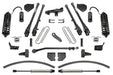 Fabtech?s 8? 4 Link Conversion System for the Ford Super Duty is designed to provide maximum suspension performance for both on and offroad use. The system replaces the factory Radius Arm suspension with heavy duty 4 Link components for increased strength and functionality. The system will provide less caster change throughout the travel range which benefits on road driving. When offroad the 4 Link system will provide more articulation than a Radius Arm for increased terrain traversing at all speeds. Unique to this 8? system is Fabtech?s extended length Track Bar to address the hyper sensitive steering box of the late model Super Duty. Fabtech is the only manufacturer with this exclusive system that offers proper steering performance. Fabtech?s extended length Track Bar is 4? longer than stock and is offset to the driver side with a stout 1/4? thick steel mounting bracket. This design helps keep the Track Bar and Draglink closer to parallel than the factory angles to reduce push in the steering. The Track Bar allows for full lock steering of 15.50 wide tires w/ 4-3/4? BS wheels. Included in this system is the massive Dirt Logic 4.0 Resi Coilover Conversion for outstanding damping capacity offroad with a quality on road ride. The Coilover bolts in place of the factory coil spring without removal of the coil spring bucket. The giant 4? diameter aluminum remote reservoir mounts horizontally above the Coilover to allow for full compression travel with oversized tires. The Dirt Logic 4.0 Resi Coilover is the biggest and baddest on the market for the Ford Super Duty. Fabtech?s 4 Link System has been proven in over 10 years of service in rugged commercial and military applications to ensure long life on your daily driven vehicle. High quality components with properly designed suspension geometry makes this Super Duty system the pinnacle of all suspensions. Comes with a free 5 year 60,000 mile powertrain warranty.