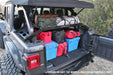 This all steel heavy duty Cargo Rack is perfect for increasing the interior carrying capabilities of the Jeep JL. The rack is located behind the rear seat creating a double deck storage area. The deck area of the rack is 22 inches above the floor and provides an additional 4 1/2 square feet of flat storage space. The three-piece design is constructed of steel plate that bolts to existing interior holes for an easy no drill installation. The rack provides a cargo carrying capacity of 150lbs. with rattle free operation. Multiple slotted holes on the perimeter of the cargo rack tray allow the use of tie down straps, bungee hooks or rope to properly secure cargo. This rack has been thoroughly tested in rugged offroad conditions and is finished in tactical black powdercoat with edge molding to prevent abrasions while accessing cargo.