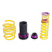 KW (H.A.S) Height Adjustable Spring kits are a great alternative to conventional lowering springs. You are no longer stuck with a fixed lowering height. KW H.A.S. systems allow you to adjust the vehicle ride height with the KW height adjuster even after the kit has been installed. Your vehicle not only gets a more dynamic look, but also the steering behavior and response of the standard dampers becomes more agile. All driver assistance systems and comfort features of a factory adaptive or electronic suspension remain operational and work harmoniously with our vehicle specific spring set up. KW uses high-quality springs made of chrome-silicon steel with spring rates designed specifically for each respective OE suspension damper and wheel load. KW's expertise and engineering ensure the spring rates will pair perfectly with the different damper characteristics of your factory adaptive electronic suspension. Along with the use of high quality materials and the included KW ride height Adjustment - mechanisms, our KW H.A.S. kits always includes the vehicle-specific bump stops with dust protection system to protect your factory suspension against wear & tear caused by road grime and debris. Similar to a coilover suspension, the KW H.A.S kit allow a continuous adjustable ride height within a tested range, something not possible with conventional lowering springs. The dust protection elements and spring perches included in the delivery, when applicable, are always adjusted to the maximum technically possible lowering, typically limited by the factory dampers. With KW height adjustable springs, a sporty and harmonious driving behavior can be achieved without the driving dynamics of performance-oriented vehicles suffering. As with all KW suspension products our engineers develop vehicle specific parameters and spring specifications which undergo comprehensive testing on the Nurburgring Nordschleife and in our KW 7-post Driving Dynamic Test Center.