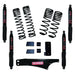 Jeep Wrangler JK 2-Door 2-2.5 in. Dual Rate Long Travel Lift Kit, One Box kit includes Front & Rear Black Max Shocks, Rear Track Bar relocation, Dual Rate Long Travel Coil Springs, Bumpstop relocation. No lower Arms, No Pitman Arm drop required. FMVSS126 Safety Compliant. Dual-rate Long Travel Coils maintain coil in bucket at full droop, Maximizes Articulation, Higher Strength Alloy over competitors prevents sagging fractures and allows for powder coating in the OEM coils for superb ride quality, Individual Rear Spring rates Left & Right side same as OEM.