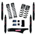 Jeep Wrangler JK 4-Door 2-2.5 in. Dual Rate Long Travel Lift Kit, One Box kit includes Front & Rear Black Max Shocks, Rear Track Bar relocation, Dual Rate Long Travel Coil Springs, Bumpstop relocation. No lower Arms, No Pitman Arm drop required. FMVSS126 Safety Compliant. Dual-rate Long Travel Coils maintain coil in bucket at full droop, Maximizes Articulation, Higher Strength Alloy over competitors prevents sagging, fractures and allows for powder coating in the OEM coils for superb ride quality, Individual Rear Spring rates Left & Right side same as OEM.