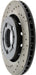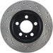 StopTech Drilled Sport Rotors are 1-piece direct replacement brake discs for factory brake systems and stock calipers that look great behind your wheels – and offer significantly improved braking performance. The unique cross-drilling aids with heat and brake dust dispersal; prevents glazing of the pads; adds bite and improves wet and dry braking performance. Built to last; the black e-coating provides protection from corrosion and the high carbon metallurgy (in most applications) offers quieter operation; better crack resistance and increased performance.