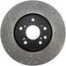StopTech Drilled and Slotted Sport Rotors are 1-piece direct replacement brake discs for factory brake systems and stock calipers that look great behind your wheels – and offer significantly improved braking performance. The unique cross-drilling and slotting aids with heat and brake dust dispersal; prevents glazing of the pads; adds bite and improves wet and dry braking performance. Built to last; the black e-coating provides protection from corrosion and the high carbon metallurgy (in most applications) offers quieter operation; better crack resistance and increased performance.