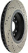 StopTech Drilled Sport Rotors are 1-piece direct replacement brake discs for factory brake systems and stock calipers that look great behind your wheels – and offer significantly improved braking performance. The unique cross-drilling aids with heat and brake dust dispersal; prevents glazing of the pads; adds bite and improves wet and dry braking performance. Built to last; the black e-coating provides protection from corrosion and the high carbon metallurgy (in most applications) offers quieter operation; better crack resistance and increased performance.