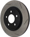 StopTech Slotted Sport Rotors are 1-piece direct replacement brake discs for factory brake systems and stock calipers that look great behind your wheels – and offer significantly improved braking performance. The unique slotting aids with heat and brake dust dispersal; prevents glazing of the pads; adds bite and improves wet and dry braking performance. Built to last; the black e-coating provides protection from corrosion and the high carbon metallurgy (in most applications) offers quieter operation; better crack resistance and increased performance.