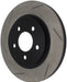 StopTech Slotted Sport Rotors are 1-piece direct replacement brake discs for factory brake systems and stock calipers that look great behind your wheels – and offer significantly improved braking performance. The unique slotting aids with heat and brake dust dispersal; prevents glazing of the pads; adds bite and improves wet and dry braking performance. Built to last; the black e-coating provides protection from corrosion and the high carbon metallurgy (in most applications) offers quieter operation; better crack resistance and increased performance.