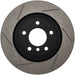 StopTech Slotted Sport Rotors are 1-piece direct replacement brake discs for factory brake systems and stock calipers that look great behind your wheels – and offer significantly improved braking performance. The unique slotting aids with heat and brake dust dispersal; prevents glazing of the pads; adds bite and improves wet and dry braking performance. Built to last; the black e-coating provides protection from corrosion and the high carbon metallurgy (in most applications) offers quieter operation; better crack resistance and increased performance.