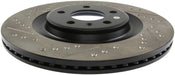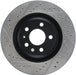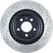StopTech Drilled and Slotted Sport Rotors are 1-piece direct replacement brake discs for factory brake systems and stock calipers that look great behind your wheels – and offer significantly improved braking performance. The unique cross-drilling and slotting aids with heat and brake dust dispersal; prevents glazing of the pads; adds bite and improves wet and dry braking performance. Built to last; the black e-coating provides protection from corrosion and the high carbon metallurgy (in most applications) offers quieter operation; better crack resistance and increased performance.