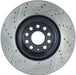 StopTech Drilled and Slotted Sport Rotors are 1-piece direct replacement brake discs for factory brake systems and stock calipers that look great behind your wheels – and offer significantly improved braking performance. The unique cross-drilling and slotting aids with heat and brake dust dispersal; prevents glazing of the pads; adds bite and improves wet and dry braking performance. Built to last; the black e-coating provides protection from corrosion and the high carbon metallurgy (in most applications) offers quieter operation; better crack resistance and increased performance.