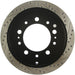 StopTech Drilled and Slotted Sport Rotors are 1-piece direct replacement brake discs for factory brake systems and stock calipers that look great behind your wheels – and offer significantly improved braking performance. The unique cross-drilling and slotting aids with heat and brake dust dispersal; prevents glazing of the pads; adds bite and improves wet and dry braking performance. Built to last; the black e-coating provides protection from corrosion and the high carbon metallurgy (in most applications) offers quieter operation; better crack resistance and increased performance.