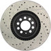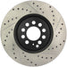 StopTech Drilled and Slotted Sport Rotors are 1-piece direct replacement brake discs for factory brake systems and stock calipers that look great behind your wheels – and offer significantly improved braking performance. The unique cross-drilling and slotting aids with heat and brake dust dispersal; prevents glazing of the pads; adds bite and improves wet and dry braking performance. Built to last; the black e-coating provides protection from corrosion and the high carbon metallurgy (in most applications) offers quieter operation; better crack resistance and increased performance.