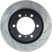 StopTech Drilled and Slotted Sport Rotors are 1-piece direct replacement brake discs for factory brake systems and stock calipers that look great behind your wheels – and offer significantly improved braking performance. The unique cross-drilling and slotting aids with heat and brake dust dispersal; prevents glazing of the pads; adds bite and improves wet and dry braking performance. Built to last; the black e-coating provides protection from corrosion and the high carbon metallurgy (in most applications) offers quieter operation; better crack resistance and increased performance.