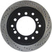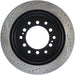 StopTech Drilled and Slotted Sport Rotors are 1-piece direct replacement brake discs for factory brake systems and stock calipers that look great behind your wheels – and offer significantly improved braking performance. The unique cross-drilling and slotting aids with heat and brake dust dispersal; prevents glazing of the pads; adds bite and improves wet and dry braking performance. Built to last; the black e-coating provides protection from corrosion and the high carbon metallurgy (in most applications) offers quieter operation; better crack resistance and increased performance.