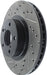 StopTech Drilled and Slotted Sport Rotors are 1-piece direct replacement brake discs for factory brake systems and stock calipers that look great behind your wheels – and offer significantly improved braking performance. The unique cross-drilling and slotting aids with heat and brake dust dispersal; prevents glazing of the pads; adds bite and improves wet and dry braking performance. Built to last; the black e-coating provides protection from corrosion and the high carbon metallurgy (in most applications) offers quieter operation; better crack resistance and increased performance.
