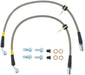StopTech Stainless Steel Braided Brake Lines provide a quicker; firmer; more consistent pedal response by maintaining consistent brake pressure. Additionally; stainless steel lines provide precision brake modulation; especially during threshold braking. The improvement in pedal feel is more dramatic on older vehicles where the factory rubber line may have softened and swelled due to age. A variety of end fittings are available to meet application needs. All fittings are engineered for proper fit and durability. All necessary brackets and fasteners are included with each line kit.